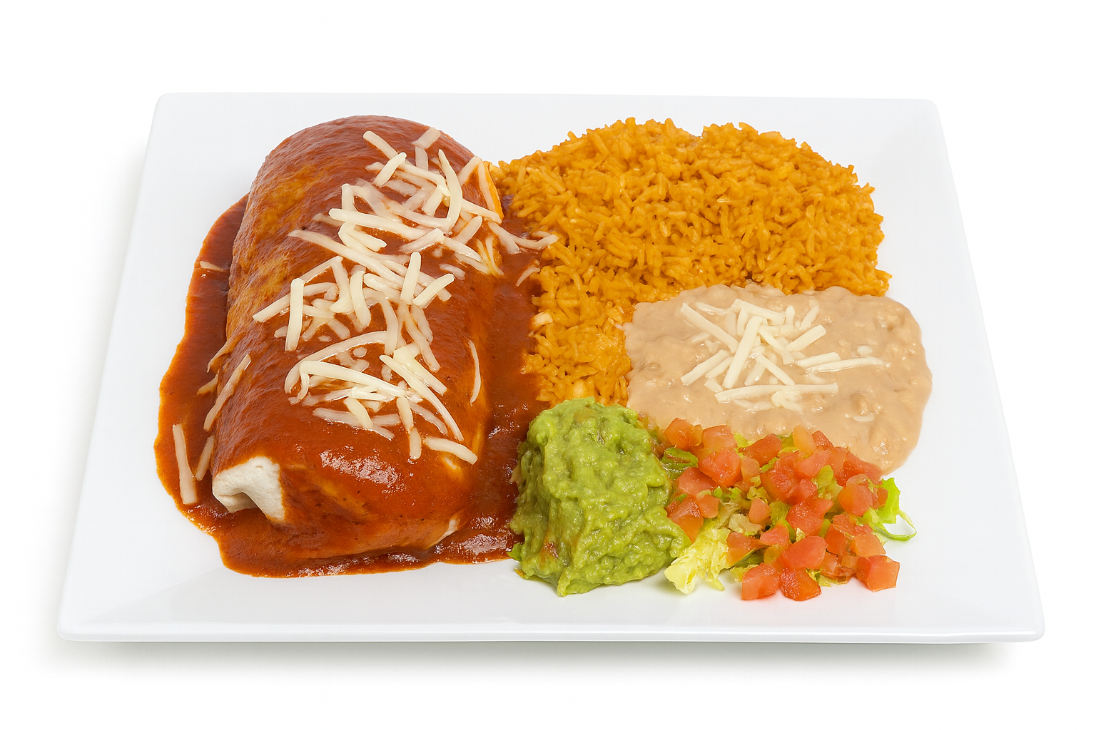 Served with: Rice, beans, salad and tortillas